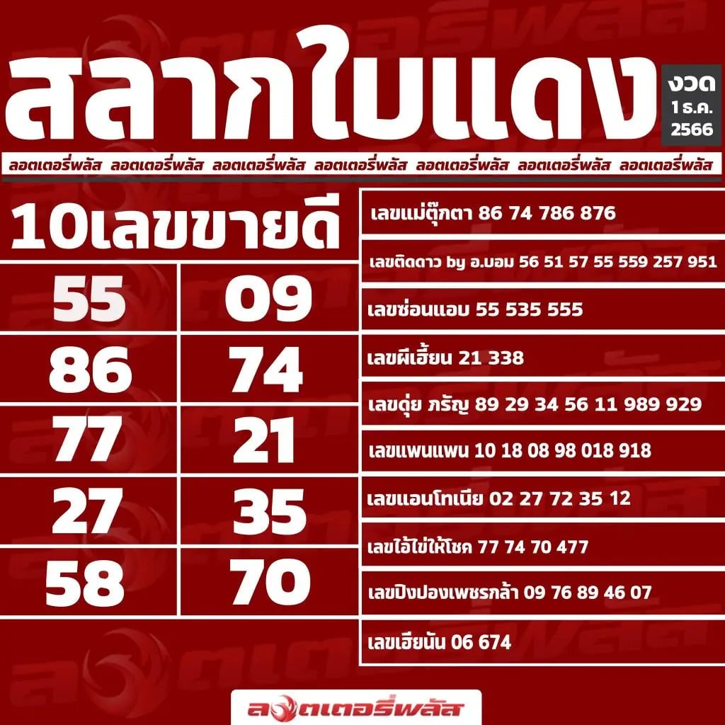 หวยใบแดง 1-12-66 เลือกแนวทางของทางเว็บหวยอันดับ 1 แจกหวยฟรี ทุกงวด ลุ้นรวยก่อนใคร ที่นี่